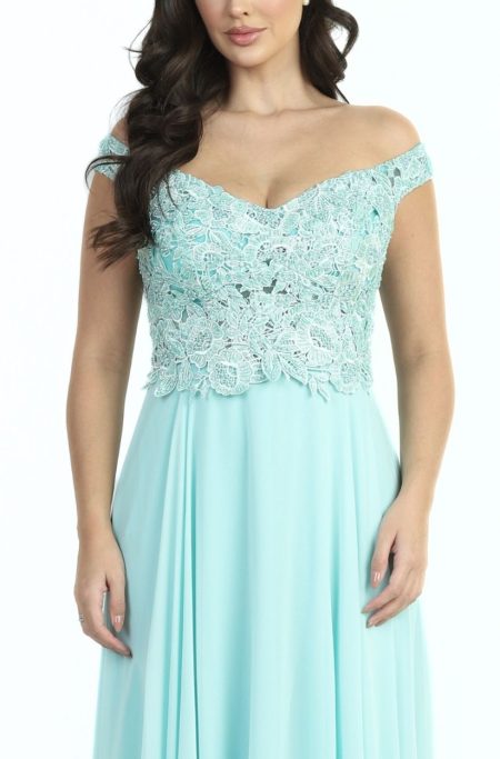 Vestido Beatriz Ombro A Ombro Bordado, Pala com AplicaÇÃo e Saia Chiffon Rodada – Tiffany